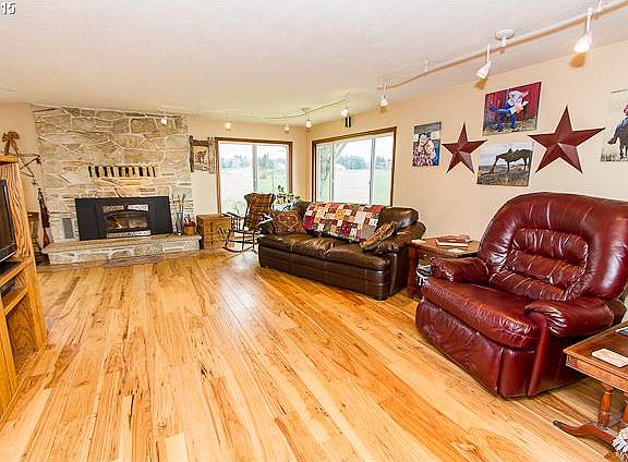Stunning Mt.Hood View and rolling pastures from the home!Fenced & cross fenced pastures,30x24 shop,36x30 pole barn,96x74 AG building w/haylofts & stalls.Diesel pump/tank.Home has covered 16x30 deck,hardwood & tile floors,cozy fireplace insert and many updates.Heated floors in baths.Lower level boasts family room,bedroom,full bath & laundry. Great horse or livestock property. 2 tax lots!Make this YOUR working farm!More pics on virt tour
