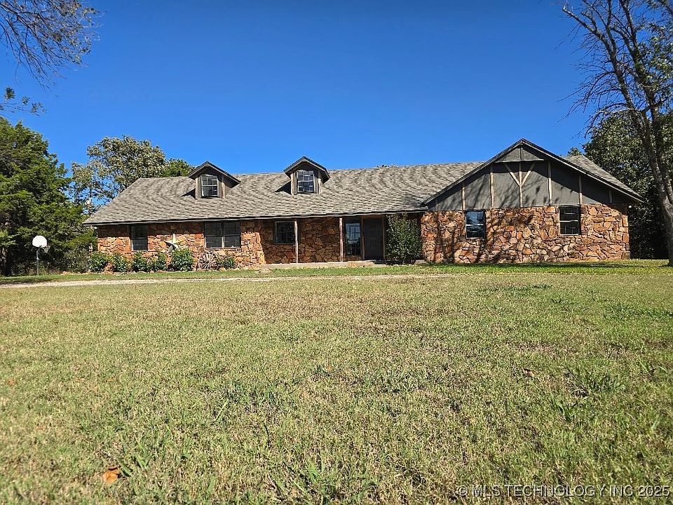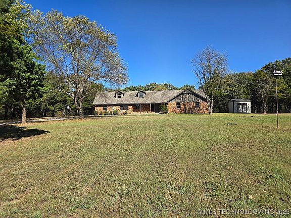 Beautifully updated home on 3.4 acres +/- with many mature trees and maintained yard. This home boasts a great room upon entry with a central location in floorplan with a large fireplace and hearth to solidify the country home feel. There are 3 bedrooms downstairs and one bedroom up stairs. The primary bedroom has superb view of the large front lawn with a massive double door closet with hall leading into it's own bath. The other down stair bedrooms are ample in size with great closet space as well. Formal dining area flows into kitchen with master crafted cabinets. The upstairs is one large bedroom with a large walk in closet. The once 2 car garage has been professionally converted into 2 separate rooms that could be used as an extra bedroom or living area or office space with out door entry. Detached 2 car garage/shop is a short walking distance from front door. New roof this year as well as new flooring, bathroom and kitchen updates, and new hot water heaters. This home is minutes from Cleveland public schools and a quick 40 minutes or less from downtown Tulsa or Stillwater. Do not miss this property.