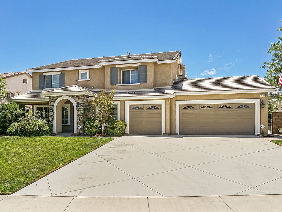 Home looks like a model and is located on huge 16,434 sqft lot (per title) on a cul-de-sac location. Huge open floorplan features two downstairs bedrooms, 4th bedrm has private full bath, and the 5th bedrm is converted to downstairs office. Kitchen has extra large walk-in pantry and opens to spacious family rm with wood burning fireplace. Gracious sized formal living & dining room. Huge bonus room upstairs with storage closet. Master suite has view of desert & mtn range. Master bath has stone tile step in shower & separate jetted tub. Thousands spent on fantastic private entertainer's back yard, no rear neighbors. Meticulously manicured backyard with cool, lush lawn, stone block planters, mature trees and plants,custom stamped concrete patio decking, w/ two massive patio covers w/ sun screen.