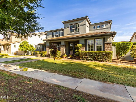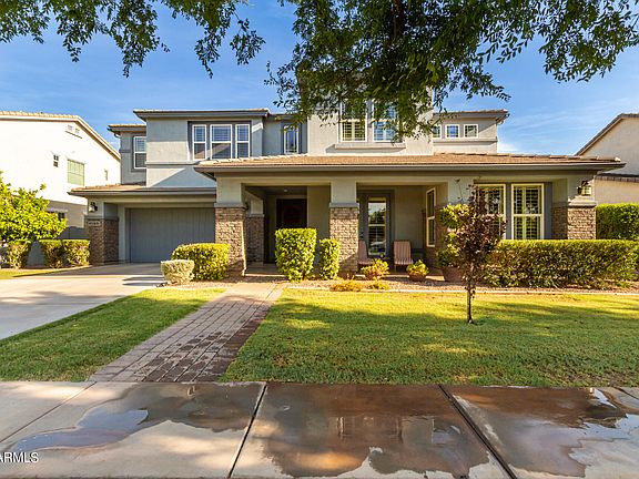 New Paint, New Price!...Move in just in time for the ever so popular ''Christmas on Comstock'' Brand new interior paint! Stunning home, overflowing with unique features & upgrades and located in one of Gilbert's finest communities, Lakeview Trails North at Morrison Ranch. This beautifully maintained, 4,361sf home, has an exceptional floorplan for entertaining and shows like a model because it was formerly the model! With 5 bedrooms, 3.5 baths, bonus/game room, and first floor office, you'll surely want to make this home your own! In this home, you'll find, tumbled travertine tile, wood plank flooring, crown moulding, wood shutters and surround sound throughout. This home features a formal living room, dining room, gourmet kitchen, with two islands, French Country... cabinetry, stainless steel appliances including a built-in refrigerator & freezer, a commercial grade gas range, warming ovens, granite counters, and a backsplash with travertine accents, a butler's pantry and two large walk-in pantries. Spacious family room with custom built-in entertainment center and a gorgeous gas fireplace in the corner, overlooking the resort style backyard with a Pebbletec pool complete with water features, a large, covered patio with fans, sun shade, and a built-in BBQ surrounded by fruit trees and lots of lush greenery for privacy. Attractive, curved staircase, with another access to the stairs off the main hallway, leads you upstairs, to the majestic Owner's Suite that sits at the rear of the home, with a gorgeous, ensuite bathroom, including a large, jetted soaking tub, separate tiled walk-in shower, dual vanities, and a large walk-in closet with windows for natural lighting. 4 Additional guest bedrooms, one being an ensuite guest room, and 1 more full bath along with a large bonus/game room and laundry room complete the upstairs. Other extremely valuable features of this fabulous home include an owned complete Solar system, saving you a lot of money, a brand new Lennox, 3 unit HVAC System, 3 new, smart thermostats, newly painted exterior, new 75 gallon water heater, whole house water purification system and surround sound speakers throughout. For someone dreaming of a whistle clean garage, this 3-car tandem space has epoxy coated floors and ample storage. Wonderful location and the community features basketball courts, children's play areas & lots of community events. Plenty of shopping, Dining and Entertainment nearby. Loop 202 and US 60 offer easy access for quick commutes anywhere in the Valley. Located in one of the most highly rated school districts around. 3 miles to San Tan Village! Do not miss out on this wonderful opportunity to own in Morrison Ranch.