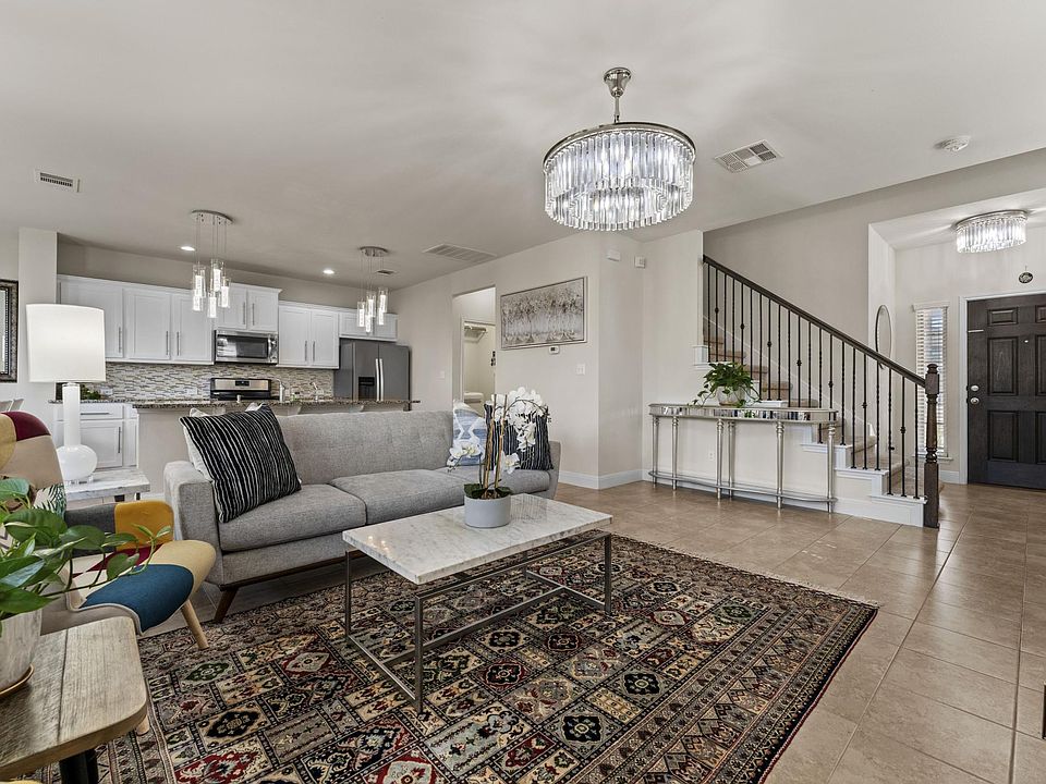 Come check out this attractive property offers a wonderful place to call home. Imagine preparing culinary masterpieces in your kitchen, complete with a large kitchen island that provides ample space for both cooking and gathering, shaker cabinets offering stylish storage, stone countertops providing a touch of elegance, and a beautiful backsplash adding a personalized flair. The kitchen bar creates a casual dining spot, perfect for morning coffee or evening conversations. In the bathroom, start your day refreshed in a tiled walk-in shower and enjoy the convenience of a double vanity, making mornings a breeze. The bedroom features an ensuite bathroom, providing a private and peaceful retreat. Enjoy the outdoors in your fenced backyard, providing a secure space for relaxation and recreation, or unwind on the patio, perfect for enjoying the beautiful Texas weather, and an outdoor living space. Other convenient features of the home include a laundry room. This Round Rock residence presents an opportunity to embrace a relaxed and stylish lifestyle.