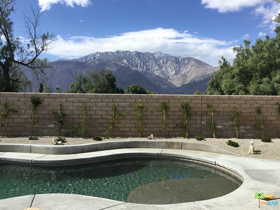 Don't miss out on the opportunity to own one of the nicest homes in Four Seasons with an incredible view and private salty pool.What sets this approx. 2023 SF, 2 Bedroom 2 bath with Den/third bedroom home apart, is it's extra large and very private flag lot offering privacy, spectacular mountain views and it's own beautiful pool and spa! Flooded with light, majestic mountain views and high ceilings, the large open kitchen and great room with gas fireplace are perfect for entertaining and all open to the beautiful back yard.Other amenities include new landscaping, a large attached two car garage, huge laundry room with washer/dryer. The master suite has gorgeous views, two large walk in closets and separate large tub and shower. All situated at the end of a quiet cul-de-sac. The best of Palm Springs living. The Lodge features a state of the art gym, library, card room, spa, heated pools, BBQ area, tennis/pickle ball court and so much more.Welcome to Four Seasons active adult community