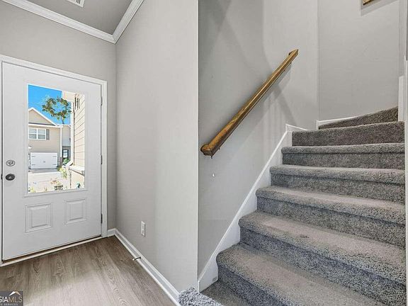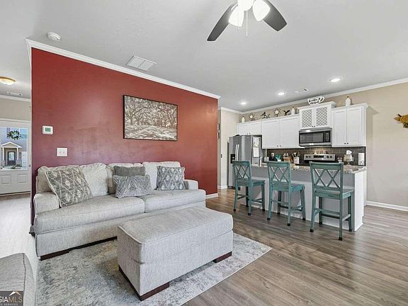Nearly new Townhome in Oakwood not far from Lake Lanier. Walking distance to Oakwood Elementary School. Private rear yard. 2 Car garage! All bedrooms and laundry room on upper level. Kitchen with large center granite island featuring white cabinets opens to large family room with electric fireplace equipped with logs. Walk in pantry in kitchen, electric range, microwave and dishwasher. Plenty of countertop space for your chef tools! Natural light flows beautifully into main level through double windows. Powder room located in hallway to garage. Private rear patio is perfect for entertaining and grilling. Upper level is complete with spacious Owners Suite featuring a pretty trey ceiling and two closets. Owners bath has large soaking tub, double sinks, shower and leads to laundry room.... how convenient! Secondary bedrooms are generously sized and served by 2nd bath. Pride of ownership is evident in details and condition of the home.