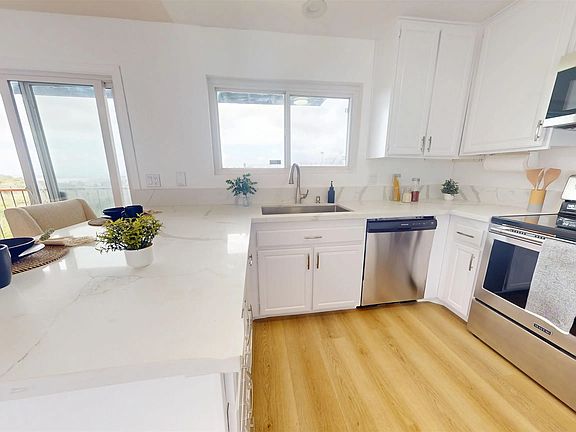 If you love bay & ocean views, fresh stylish remodels, abundant parking, & a very convenient central location then Welcome Home! Condo has gorgeous westerly water views (and breezes!) down the canyon to Mission Bay and the Pacific Ocean. Recently renovated 2bed 1bath 840sf condo in the Sea Canyon Community of Clairemont. Views from private back balcony deck, kitchen, and living. Home has in-unit stacked washer/dryer hookups off kitchen, medium-size external storage closet, & 1 assigned carport space (with ample extra un-assigned parking spaces). Range/oven, dishwasher, microwave are brand new. Sea Canyon Community has a grass area on view-side of community as well as a community pool/spa. HOA Community Info and Rules: Parking spot for condo is #2 // Sea Canyon Community has a total of 48 condos. 12 units per building. // HOA provides water, hot water, trash, etc // Spa heated year round, Pool heated half the year // propane grill OK on balcony // 30 day minimum for rentals // 2 pet max