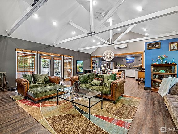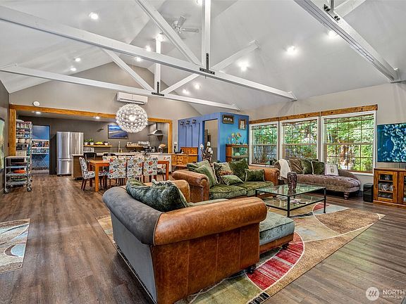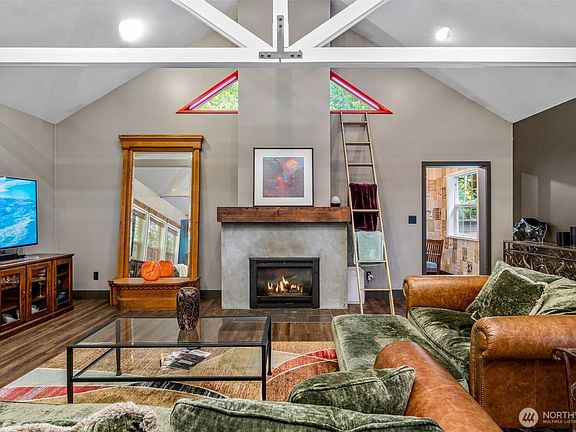 Tucked among towering cedars & firs, this Whidbey Island retreat sits on nearly 5 acres. The charming home offers single level living w/ a spacious layout designed for relaxing & entertaining. Main living area blends kitchen, dining, & family room w/ French doors leading to the patio to bring the outside in. Expansive primary w/ ensuite & private outdoor access, & an additional bed/bath in the main house. Separate guest cottage has its own bed & bath for additional living space or privacy for guests. Lush gardens & firepits create the perfect backdrop for outdoor gatherings. Spacious shop & detached garage offer abundant storage & hobby space. Just 9 minutes to ferry & close to island amenities, blending comfort, charm & convenience.