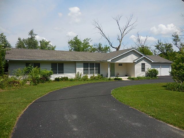Totally remodeled 3 bedroom, 2 bath ranch with 7 1/2 car garages. (Attached 3 1/2 car garage and detached 4 car outbuilding with full loft and heat, septic, water to building with 9 foot door. Large cement slab. Beautiful Tigerwood flooring and ceramic kitchen and baths. New kitchen and remodeled baths. Kitchen skylight. New roof in 2004. New furnace in 2005. Baths remodeled in 2005. New 3 1/2 car attached garage in 2007. Expandable lower level. New deck 31x16. July 2015 new roof and gutters on house and outbuilding.