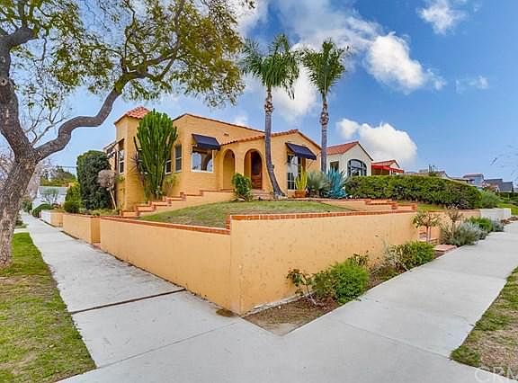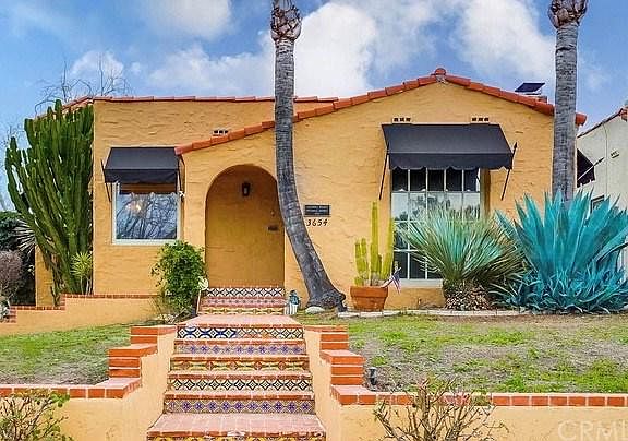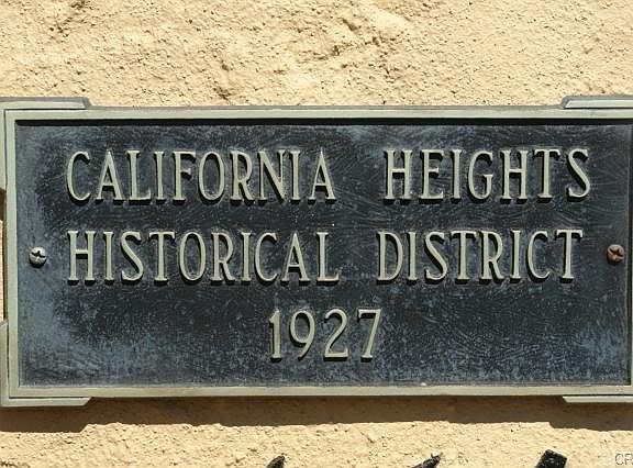 This handsome Spanish Revival home sits upon an elevated corner lot on one of the most sought after streets in California Heights. This home just needs some fresh landscaping and interior/exterior paint to make it shine. Gleaming hardwood floors and dual-paned windows throughput. Enter through the magnificent original mahogany front door into the light filled living room with barrel ceiling, fireplace and built-in display shelves. The large formal dining room has an arched entryway, wall sconces and unique ceiling molding details. The remodeled kitchen has cherry cabinetry, granite counters, all stainless steel appliances and highlighted by terra cotta pavers and hand painted tile backsplashes. Off the kitchen is a small nook with built-in desk ideal for your Zoom meetings or learning from remote. The full bathroom is accented by original hexagon tile flooring, rounded corner tub, built-in vanity and period style light sconces, pedestal sink and commode. Wide hallway has two spacious coat closets, linen cabinet and drawers and French door exiting to side yard. Both bedrooms are spacious with walk-in closets with original built-in dressers. Master bedroom has a French paned slider leading to private rear yard and deck. Oversized 1 car garage has automatic opener, storage cabinetry and separate laundry area. This desirable home will sell very fast!!!