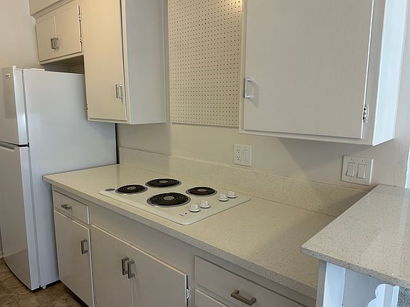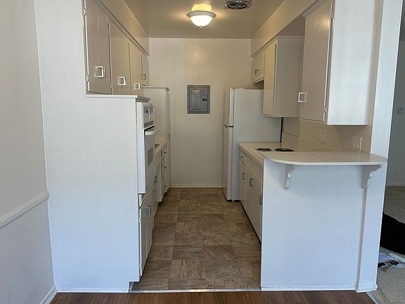 Terrific 2 BD 1BA upper apartment in a quiet 10 unit building. New carpet in the living room and bedrooms, with new luxury vinyl flooring in the spacious dining area, and new vinyl flooring in the kitchen and bathroom. Kitchen equipped with refrigerator, oven and range, and new modern countertop. New air conditioning units in both bedrooms. Ceiling fan in the dining area. Large private balcony with large window and sliding glass door looking onto the balcony. One covered parking place included. Cats allowed, sorry no dogs. Building located in the Palms area, close to entertainment, restaurants, shopping and transportation.