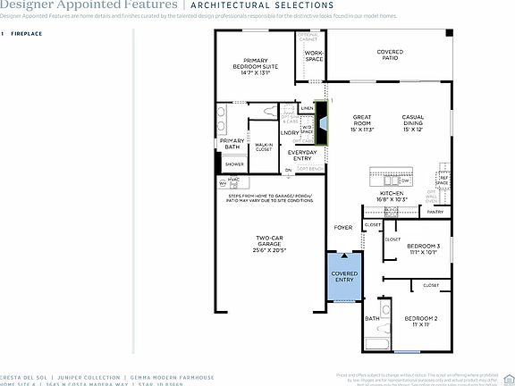 Discover the exquisite Gemma home design, offering a perfect blend of luxury and functionality. This single-family residence boasts an open floor plan that creates a seamless flow throughout. As soon as guests enter through the welcoming foyer, they are greeted by the spacious great room. Entertaining is made easy with the adjacent casual dining area that opens up to a covered patio, ideal for indoor-outdoor living. As well as a well-appointed kitchen. Retreat to the private primary suite, complete with a luxurious shower in the primary bath and a separate private water closet. Two additional bedrooms provide ample space for family or guests, while the laundry room adds practicality to everyday life. Home is under construction and photos are similar. Front and rear landscape included. BTVAI