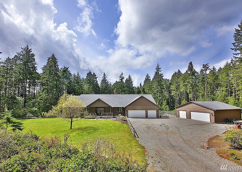 Bask in the sunshine of your private sunny home on 5+/- usable acres. 1-level ranch style, newer home w/spacious open floor plan, vaulted ceilings & plenty of light thru-out. 4beds, 3baths + media room gives plenty of space for generational gatherings.Cozy fireplace, stainless appliances, plenty of counter space + eating bar, walk-in pantry, generous laundry & 3 car garage. Super deck including hot tub is perfect for entertaining. Top it all off with a large 3 bay shop. Now that's Island Living!