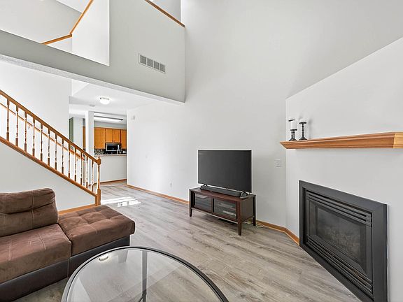 Welcome to this charming move-in ready end-unit townhome in a prime Eagan location! This 2-bedroom, 2-bath home features a bright and open layout with a cozy gas fireplace in the main level living room. The dining area walks out to a private patio overlooking beautiful green space, perfect for relaxing or entertaining. The upper level offers two spacious bedrooms including the primary with walkthrough full bathroom and walk-in closet. Enjoy a versatile loft space, ideal for a home office, media room, or flex space. 2-car garage and the ease of townhome living. Located just minutes from shopping, restaurants, and more, this home offers the perfect blend of comfort and convenience!