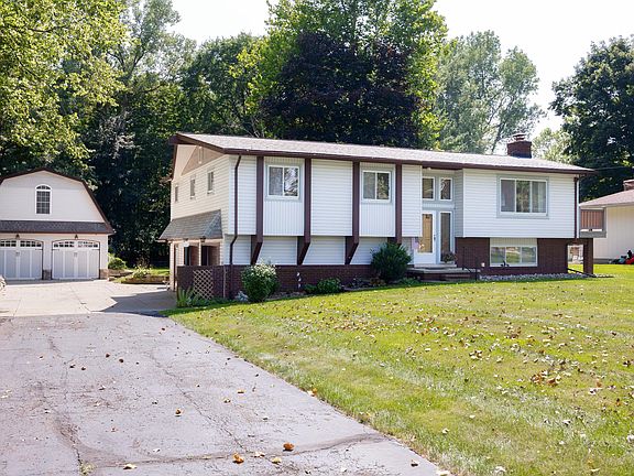 Charming 3 bedroom home near the Huron River, offering space, function, and character. The living room impresses with vaulted ceilings accented by rich wood beams. The updated kitchen features oak cabinets and Swanstone counters. Enjoy a spacious primary suite with a large walk-in closet, plus two additional bedrooms. The remodeled recreation room boasts an oak bookcase, wet bar, and cozy fireplace—perfect for entertaining. A highlight of this property is the expansive second garage with room for 4 cars and abundant storage, complementing the attached garage, which has a workroom. Outdoor living shines with a large deck and landscaped yard. Close to nature yet conveniently located, this home blends comfort with practicality in a sought-after setting.