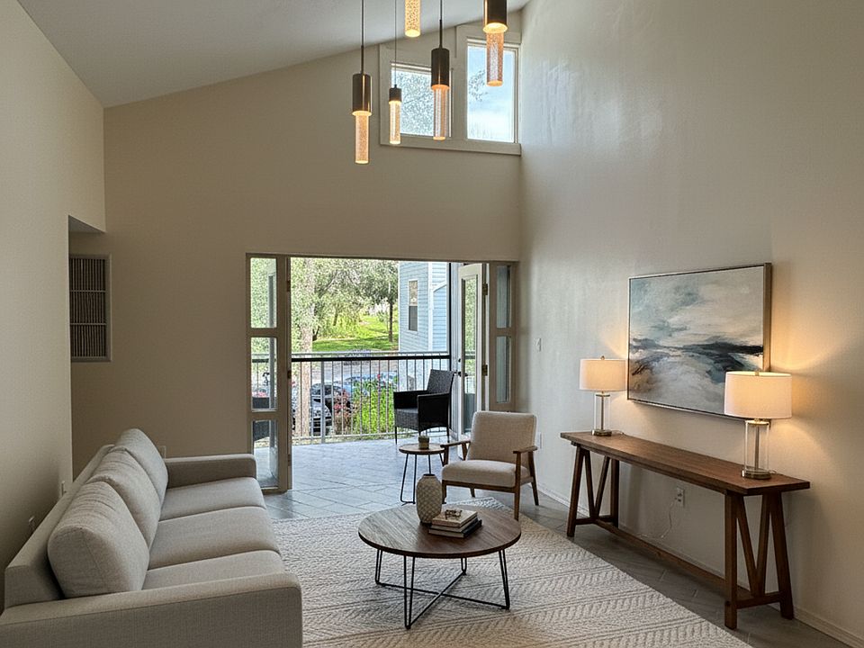 Step into this beautifully designed 2-bedroom, 2-bath home where style and functionality blend seamlessly. The spacious living areas feature vaulted ceilings and flow effortlessly into a covered balcony and private back patio, perfect for morning coffee or evening gatherings.