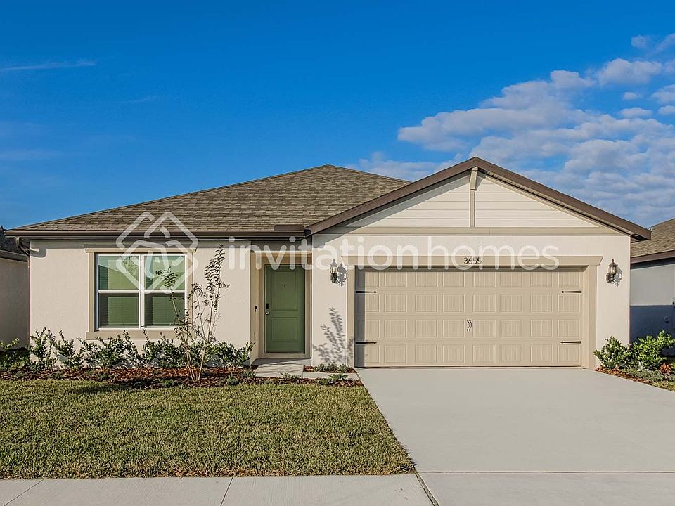Home Features and Amenities: Air Conditioning, Garage, Kitchen Island, Long Lease Terms, Open Floorplan, Pet Friendly, Primary Bedroom on Main, Quartz Countertops, Recessed Lighting, Single Story House, Smart Home, Stainless Steel Appliances, Tile, Walk in Closet, W/D Hookups, and professionally managed by Invitation Homes.