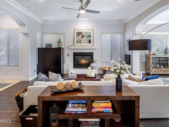 This stunning home features many recent luxurious updates and offers nearly 3,600sf of living space, including 5 bedrooms, 4 bathrooms, & a 3-car garage. A standout aspect of the house is the first-floor bedroom, accompanied by a newly updated bathroom that includes a walk-in shower. The backyard oasis is impressive, featuring a large resurfaced pool & spa, surrounded by abundant, lush, and colorful landscaping. The primary suite boasts an expanded walk-in closet, a sitting area, a luxurious bathroom w/dual sinks, a soaking tub, and a walk-in shower. Conveniently located, this home is within walking distance of a large private park & the Aviano clubhouse, which offers resort-style amenities such as a heated swimming pool, hot tub, fitness center, basketball court, tennis court & more
