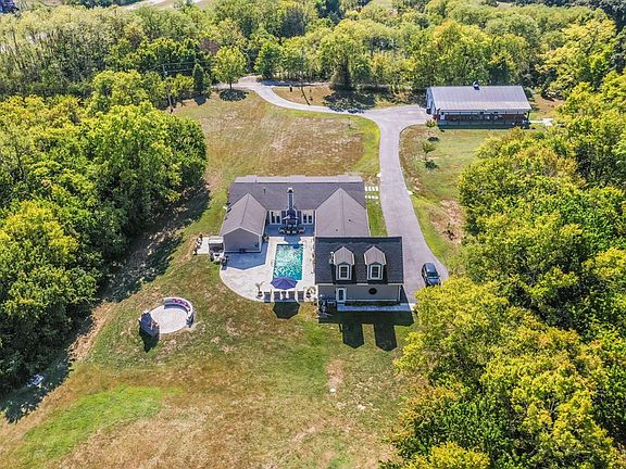Escape to 13.49 private acres with two unique homes in Taylorsville. This property is conveniently located just 2.5 miles from Taylorsville Lake Marina, 17 miles to the Gene Snyder Freeway, and 18 miles to The Outlet Shoppes of the Bluegrass. The main residence was thoughtfully designed with extensive decorative concrete details and a floor plan that wraps around the heated in-ground salt water pool. The home is flooded with natural light from walls of windows. Inside you'll find 4 bedrooms, 3 full baths, and a spacious bonus room above the garage. A second home on the property offers 2 bedrooms, 2 baths, and a 2-car garage, ideal for guests, family, or income potential.