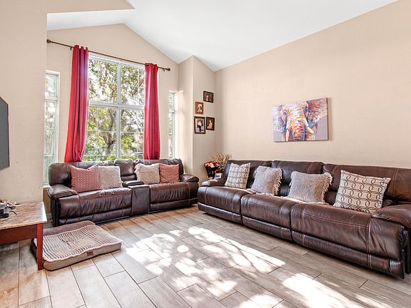 Tucked in a desirable neighborhood with great curb appeal, this warm and welcoming two-story home offers the space, style, and upgrades today's buyers are looking for. Inside, enjoy vaulted ceilings, large windows that flood the living room with natural light, and modern wood-look tile flooring throughout the main living areas. The remodeled kitchen is a showstopper, featuring rich cabinetry, quartz countertops, stainless steel appliances, and a charming breakfast bar perfect for morning coffee or casual meals. The open-concept dining area flows beautifully for entertaining, while a second cozy living room with a brick fireplace offers a peaceful retreat or ideal office setup. The garage has been partially converted into a functional gym or bonus room, giving you extra space to work or play.