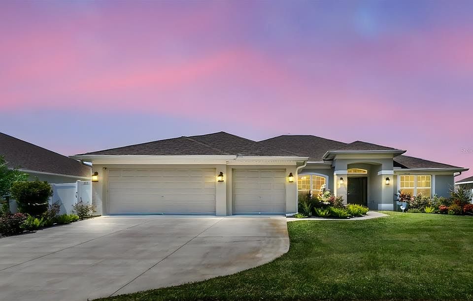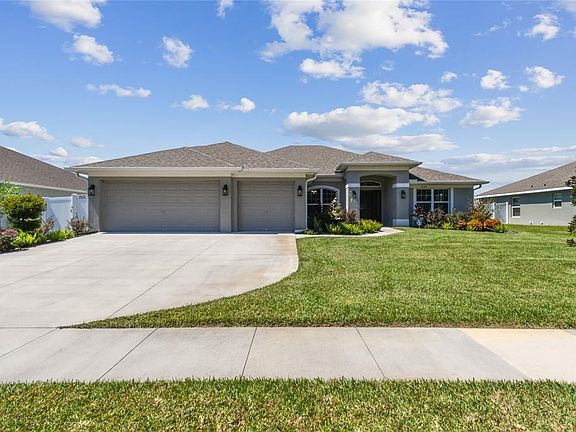 One or more photo(s) has been virtually staged. Located in Lakeland in the serene community of Knights Landing. Built in 2022 this 4 bedroom/3 bath beautifully-designed home shows like a model and is move-in ready! Do you want more “bells and whistles” than a plain NEW home from a builder? The owners added many improvements plus the home still looks brand NEW … why wait to build?! Enter the home from the cozy front porch through a beautiful glass trimmed door. Open-concept floorplan features high ceilings, spacious kitchen overlooking the family room, plus formal living and dining rooms. Enough space for the entire family to relax and enjoy. Modern gourmet kitchen features plenty of counter space, 36-inch upper custom wood cabinets with crown molding, Stainless Steel appliances, sleek Granite counters, pantry, eat-in area plus a breakfast bar. The 3-way split bedroom plan offers maximum privacy for the whole family. The primary bedroom suite is an expansive room with 2 walk-in closets plus deluxe bath with double sink vanities, glass walk-in shower, and garden soaking tub. Beautiful ceramic tile flows seamlessly throughout the main living areas for a cohesive look with high ceilings elevating each room. Make your way to the other side of the home to find 3 additional bedrooms and 2 full baths. Ceiling fans, window blinds and drapes throughout. As you step out back the home opens to a screen patio and large privacy-fenced yard, a perfect place to relax and entertain. There is plenty of room to add a pool. This home site is situated in a quiet cul-de-sac with huge green space areas for people and pets to play. Additional features include 3-car garage and dedicated laundry room with washer/dryer included. The sellers added multiple improvements since ownership including – custom window shutters, stone veneer electric fireplace surround with build-in entertainment center, solar light tubes, Brinks alarm system, screened patio, privacy fence, lush landscaping, solar panels, irrigation well, new Saint Augustine sod, and a RainKing water softener. Premier solar home also features leased solar panels that significantly reduce your electric costs. Embrace eco-friendly living and cost savings on your utility bills with this Solar Powered Home!! Great location, easy access to I-4. Only minutes from Lakeland Square Mall and loads of shopping, dining, entertainment, nature reserves & gardens, and various recreation including Circle B Bar Reserve and Safari Wilderness Ranch (wildlife reserves), and Colt Creek State Park (5000 acres offering trails & canoe/kayak rental). Schedule your private viewing today!