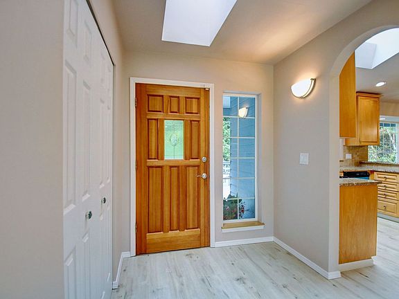 Available and ready for a new tenant! This lovingly cared for custom home with 4 car garage tucked in a private setting just 15 minutes from the ferry. New sunny front and back decks. Vaulted ceilings, multiple skylights, and walls of windows flood the home with natural light. Living room with mini split for heat & A/C. Master wing with French door entry, slider to private yard, large walk-in closet, and 5-piece bath. Both full bathrooms updated with new cabinets and quartz. Spacious kitchen with granite countertops, full height cabinets with pull out shelves, and Stainless appliances. Propane stove in Family room. New exterior paint, LVP flooring, and lighting. RV parking. Wired for generator. Solar panels. Community features: private beach, pool, clubhouse, sport courts, 2 boat launches. Tenants pay all utilities and maintain landscape. Pets are case by case with an additional deposit. This is a smoke free home and property. Owners' furniture is for staging purposes however may be left for tenant's use. Please do not access property without an appointment.
