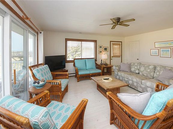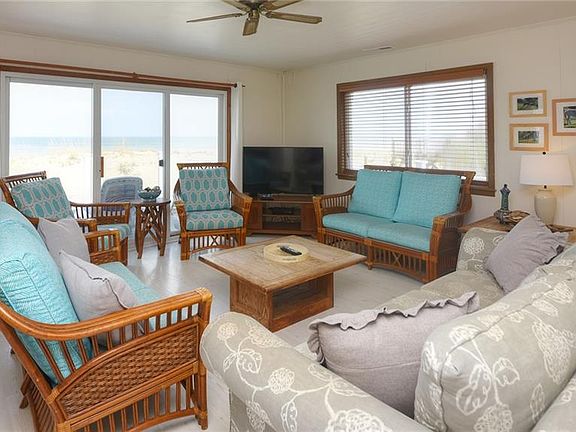 Oceanfront beach homeComfortable furnishingsVinyl floorsEstablished dunes
