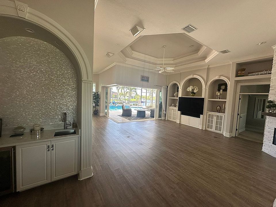 Outdoor bbq areaLarge lanaiEpoxy floorDecor propane stoveWaterfront homeAmple storageJet ski lift