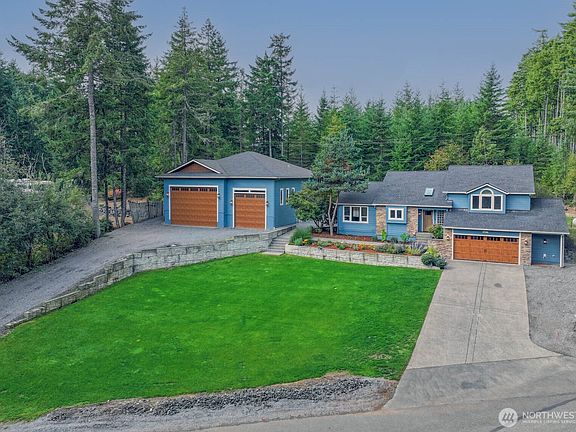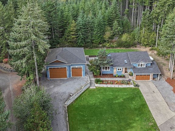 Set on 2.12 acres, this 3-bed, 3-bath home offers 1,830 sq. ft. of living space with Western Red Oak hardwood floors finished in Swedish oil, premium craftsman trim, recessed LED lighting, and an oversized high-efficiency Napoleon gas fireplace with dual TV conduits. The 2.5-car garage includes storage and a half bath. A 43’×50’ detached shop features a straight-in 20’×14’ door, full RV hookups (water, sewer, electric), space for two RVs plus a truck, a 20’×23’ workshop with bench, 460 sf loft with power, gas connections, and a ¾ bath. New roof, siding, A/C, furnace, stamped patio, and a 70’ irrigated garden make this home luxurious without the hassle of high maintenance.