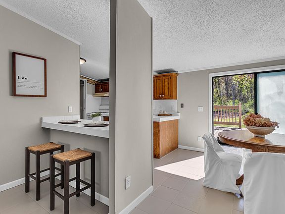 This move-in ready 4-bed, 2-bath manufactured Ranch home sits on a peaceful 0.63-acre lot. The property includes a 30x40' pole barn w/ concrete floors, 2 overhead doors and a service door, perfect for parking, a workshop, hobbies, or extra storage. The home features a split floor plan with a private primary suite that includes a walk-in closet and soaking tub. On the opposite side, you'll find three generously sized bedrooms and a full bath, offering added privacy. The sunny living room flows into the kitchen with a snack bar, laundry area, and dining space. Nice deck and private wooded yard—ideal for relaxing or entertaining. Fresh paint and modern flooring throughout. New roofs on both the home and pole barn. Appliances included. Convenient location for commuters. IMMEDIATE OCCUPANCY!