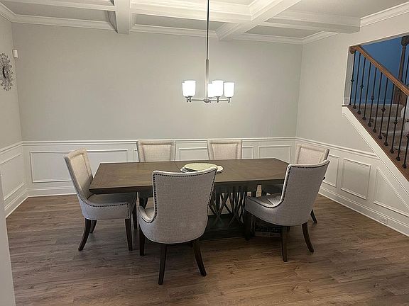 Step into the inviting two-story foyer that opens to a formal dining room with an elegant coffered ceiling perfect for entertaining. The gourmet kitchen is designed for both functionality and style, featuring granite countertops, a large center island, double ovens, a walk-in pantry, and a bright breakfast room with an open view to the family room.