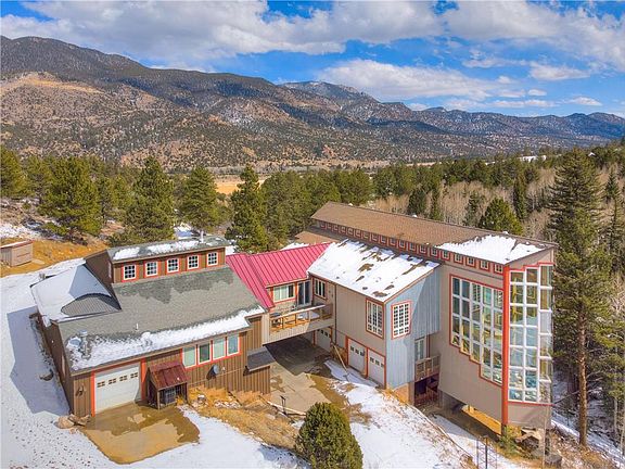 Seller Financing Available - Your legacy begins here - perched high on 35 acres overlooking the majestic Collegiate Peaks of Buena Vista. Constructed of steel I-Beam superstructure and walls of windows, three floors all serviced by a Otis elevator. The lower level features 2 private en-suite guest rooms and a replica mine shaft. The main level provides the owner repose with an artist studio, separate bedroom, a grand master with a jetted tub, sunken master bed, gas fireplace and sun room.