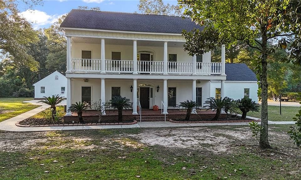 ***3 ACRES IN RURAL WEST MOBILE*** Welcome to 3658 Dawes Road, an antebellum colonial-style home located in West Mobile. With 4 bedrooms, 2.5 bathrooms, and 3,300+ square feet of living space, this home is designed to comfortably facilitate friends and family. Large windows throughout the home allow for a generous level of natural light that highlight the southern design-style. Upon entering the front door, the foyer includes a large hardwood staircase and cased openings on the right and left that lead to a sitting room and a formal dining area. Proceed straight through the foyer to find the great room, which includes a wood-burning fireplace and elegant wood paneling with beautiful crown molding. The kitchen and breakfast area are generously spaced and contain a large granite countertop with breakfast bar, as well as custom wood cabinets, as well as a butler's pantry that leads to the formal dining. Pay special attention to the beautiful, brand new LVP throughout the main floor. Master bedroom is located upstairs, with a large en-suite master bathroom containing a separate whirlpool tub and walk-in shower, as well as an enormous walk-through closet. Three additional bedrooms and full guest bathroom are upstairs, complete with brand new carpet and fresh paint for a special touch. There is plenty of outdoor sitting space, as well, including the covered front porch and balcony and the back patio/courtyard area. Guest house located behind the home is perfect as a mother-in-law suite or studio apartment. With the home situated toward the back of a 3-acre lot off of Dawes Road, your entrance to the property will be facilitated by a long driveway through a spacious front yard and is far enough back to reduce the noise from passing traffic. Parking options are almost limitless, with an attached two-car garage, extended driveway, and additional parking in the front yard if hosting larger groups. Schedule your opportunity to view this gorgeous property today.