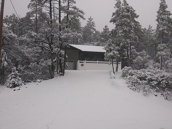 Custom site built 2020,almost new. House sits on a private wooded lot in desirable cool Pines Subdivision, no HOA. Great view of the rim , plenty of elk and Wildlife. Exterior shingle and clapboard prefinished Color Strand siding, which provides low maintenance. Two 10 ft by 20 ft decks, front covered, rear open. Upon entering there is an open area, including a dining room with French doors that open to a covered deck. A great room with vaulted ceiling and beam plus a skylight providing lots of natural light There is a raised hearth stone faced gas fireplace with marble hearth. Large L-shaped kitchen with shaker style gray cabinets, doors & drawers are self-closing, granite countertops and a large island that can seat up to six, great for entertaining. Stainless appliances include French style Whirlpool refrigerator, microwave, dishwasher, Jenn-Air wall oven and Dacor glass cooktop. Trash and recycling bins are nestled in the island. Gray barn wood laminate flooring throughout, except master bedroom and bath. Two guest bedrooms share a full bath on the north side of house. Master bedroom on the south side of the house has vaulted ceiling with a large walk-in closet. A barn door allows privacy in the master bathroom. There is a iron gas stove fireplace on a raised hearth for your comfort and enjoyment. Carpeting is gray Pile in the master bedroom and closet. All baths are porcelain or ceramic slate tile with tasteful vanities and walk-in showers. Home is heated and air conditioned with Mr. Cool mini split systems. Bedrooms have electric baseboard heat. A thousand gallon septic with a Advantex AXRT treatment system. Gas stove & fireplace provide a third source of heat and backup in case of power outage. Nice size multi-purpose landry area with Whirlpool W and D, 50 gallon electric hot water heater, and small utility sink. The two car garage has a workbench with a 10 x 20 ft storage Loft. Recently added private courtyard in front with vinyl fencing, that can be used for entertaining, fire pit, hot tub, or for the avid gardener. There is a large secure fenced area off the rear deck to safely exercise your pet. Taxes $3798. Shown by appointment only to qualified buyers. Contact Rob Tubbert @ 941-779-8376