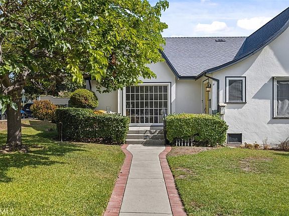 With 1,443 sq. ft. of living space on a generous 7,283 sq. ft. corner lot, this residence captures the essence of classic architecture blended with everyday comfort. A welcoming walkway leads to an enchanting arched front door, opening to a grand living room with high pitched ceilings, a brick fireplace, and large picture windows that flood the space with natural light. The arched doorways, built-in shelves, and charming niches throughout the home showcase its authentic period details and craftsmanship.