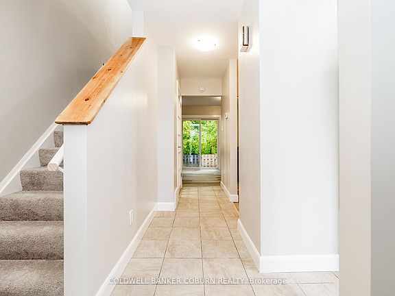 FULLY RENOVATED townhouse condo in Blossom Park with NO REAR NEIGHBOURS! Welcome to this beautifully renovated row unit offering privacy, style, and modern updates throughout. Backing onto a peaceful treed area with a bike path and no rear neighbours, this home is the perfect blend of nature and convenience. Step inside to find a freshly painted interior, luxury vinyl flooring throughout, flat ceilings on main and lower, and contemporary light fixtures that elevate the bright, airy feel of the space. The white kitchen has been fully updated with new appliances, modern countertop, double sink with new faucet, and space for additional storage or a cozy breakfast table. The open-concept dining and living area features chic ceiling lights and offers versatile space to include a TV lounge and home office setup. From here, step out to your private back patio, surrounded by mature trees - a tranquil retreat right at home. You'll find brand-new carpeting heading upstairs, and vinyl flooring throughout the second level. The bright primary bedroom overlooks the private back patio with a beautiful tree line, and has extra wide closet. Adjacent is the beautifully renovated 4pc main bathroom with oak vanity, ceramic tile flooring, luxury subway tile in shower and stylish finishes. Two spacious bedrooms complete the second floor, both freshly painted with newly added ceiling lights for a bright and welcoming feel. The finished lower level includes a renovated 2-piece bathroom, matching vinyl flooring, modern pot lights, and a laundry room with plenty of storage space. This move-in-ready home is in a well-located community, 5 min walk to Aladdin park w/ tennis & basketball courts, close to airport, schools, shopping, and transit. Don't miss this turnkey gem in Blossom Park!