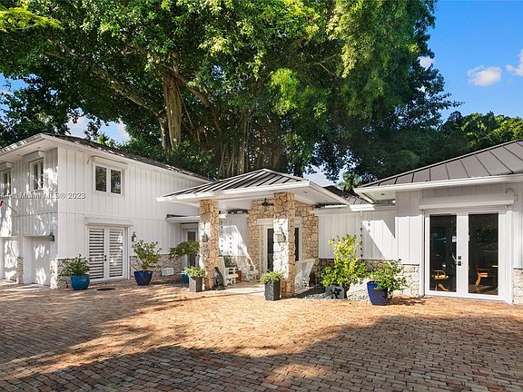 Nestled beneath the oldest Banyan Tree in Florida, in the heart of Coconut Grove, the stylish Banyan House offers a tropical oasis with tranquil landscaping. Renovated in 2012, the estate features gourmet kitchen, Viking+SubZero appliances, wine cellar, generator, and more. Naturally lit south facing kitchen w breakfast table, formal living room, dining room w/ wet bar, spacious family room and two bedrooms w/ ensuite bath on ground level. Second floor expansive master suite w/ office, two bedrooms w/ ensuite bath, spacious balcony. Resort-style backyard offers a pool, courtyard, and pathway winding around the Banyan Tree. Additional feats. incl. a coral rock fireplace, impact windows/doors, metal roof, & 2-car garage. Walking distance to Cocowalk Mall and top private schools.