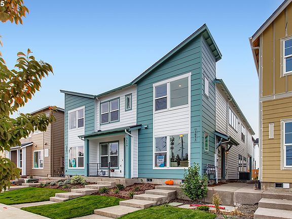 Live new without the new-construction wait in the heart of Reed’s Crossing! Built in 2025 by Weekley Homes, this NW-contemporary attached home showcases the desirable Brinson floor plan and offers first-owner quality you can feel from the moment you arrive. Thoughtful architecture, oversized windows and soaring ceilings create a bright, uplifting atmosphere throughout. Step inside and enjoy a seamless open-concept main level with white-oak laminate floors and a stylish kitchen featuring shaker-style natural wood cabinets, chrome hardware, quartz counters, ivory glossy tile backsplash, stainless steel appliances including gas range, Moen chrome faucet, pantry, and an eat-bar perfect for casual dining or entertaining. Upstairs, retreat to the sun-filled primary suite with a walk-in closet, dual sinks, walk-in shower and luxury vinyl tile floors. A second bedroom plus full hall bath, laundry area and versatile loft, ideal for a home office, media nook, fitness corner or reading lounge, offer flexible living options for today’s lifestyle. Enjoy year-round comfort with central A/C and efficiency features like a tankless gas water heater. Parking and storage are a breeze with an attached 1-car garage, oversized carport and additional driveway parking. Located in Hillsboro’s sought-after Reed’s Crossing community, where conveniences and outdoor experiences are right at your doorstep including Providence Health Center, Market of Choice, restaurants, restored watershed spaces and miles of Greenway trails connecting parks and natural areas. Low HOA includes common areas, exterior maintenance and front-yard landscaping for easy living. Modern living, prime location and a better-than-new opportunity! [Home Energy Score = 10. HES Report at https://rpt.greenbuildingregistry.com/hes/OR10235277]