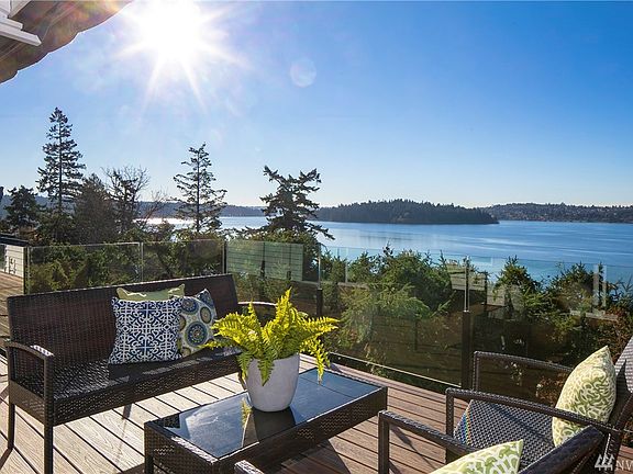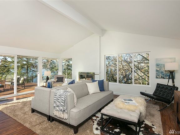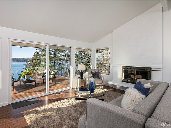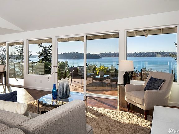 Jaw-dropping westerly lake views from every room of this completely transformed and impeccably designed midcentury home! Indulge year-round on private and expansive view decks immersed in nature and ultimate privacy. Modern design with midcentury appeal throughout. Main level not only boasts expansive views from every angle but features cathedral ceilings, enormous windows and vintage fireplace. Tranquil owner's suite with impressive new bathroom, walk-in closet, fireplace and deck access. West-facing decks on both levels expand entire width of house. New paint inside/out, new windows, new decks, new bathrooms and more (see full list). Quick access to I-90 getting to Seattle and Bellevue in minutes and a mile to the Island's town center.