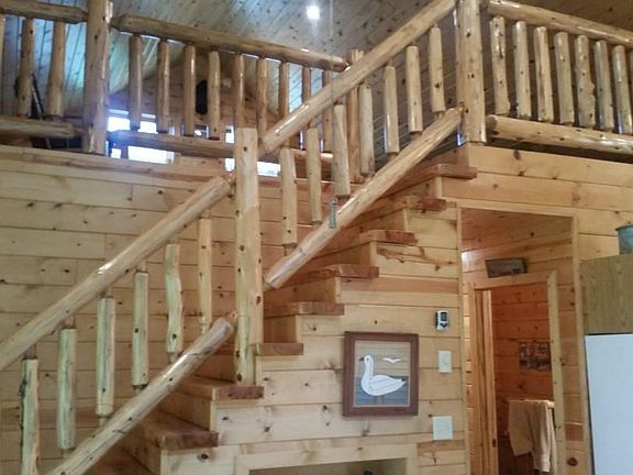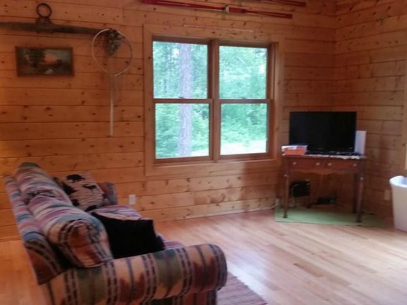 This little gem is tucked away among-st 15+ acres of woods that is great for hunting. A large area is cleared to make a nice yard with an awesome fire pit area. When you enter the house you will be wowed. All the tongue and groove pine boards were individually sanded, stained and varnished before they were installed. The beautiful log stair and loft railing was custom made locally. There are 2 bedrooms plus a large loft. Beautiful home on a beautiful piece of property don't miss out!