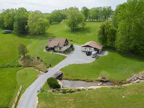 Nestled on a picturesque 2.24 acres of manicured lawns, the exterior of this home presents itself like a storybook dollhouse; epitome of timeless charm & modern luxury. The interior has undergone a remarkable transformation, boasting hardwood flooring, quartz countertops, and beautifully renovated bathrooms.. Enjoy the convenience of main level living, featuring a primary ensuite and laundry facilities for effortless day-to-day living. Gather around the stone fireplace in the spacious living area, where natural light floods the space, creating a warm and inviting atmosphere. For those who love to entertain or seek additional space for hobbies, the oversized detached garage is a true gem. Complete with a bonus room and full bath, it offers endless possibilities. Don't miss this rare opportunity to own a home that seamlessly combines charm, elegance, and modern comfort.