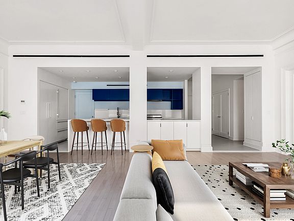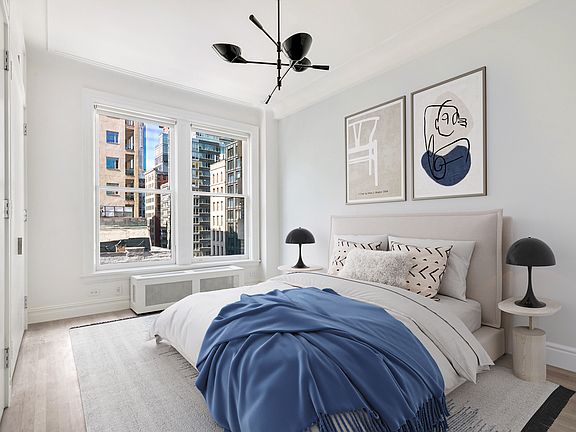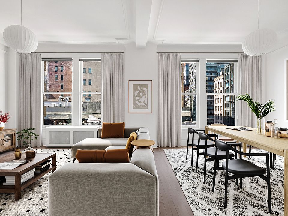 Contact Brown Harris Stevens exclusive listing agents for a private tour of this beautiful TriBeCa loft, at the corner of Franklin Street. Start with a balanced, minimalist symmetry. Add your taste, your furniture, your art and achieve the essence of authentic Downtown loft living. Located at the corner of Franklin Street, in a handsome Beaux-Arts solid concrete and steel building, this pristine home with its clean lines, pleasing proportions and classic details offers a calm respite from a restless world. This freshly painted space is beautifully complemented by milky whitewashed hardwood floors in the living area. A 26ft wide living/dining room has a 10.5ft high beamed ceiling with original crown and baseboard moldings, and open views through two sets of oversized (7ft high!) double-hung windows. Warming south sunlight in all rooms, the antidote to a grey winter. A true chef's open kitchen has an expanse of Caesarstone counter space, an abundance of custom cabinetry by Minzer & Co, and top of the line appliances by Viking, Sub-Zero and Miele. There's also a full height pantry and tons of cabinet storage space! Off the kitchen is a full-size laundry room with a Bosch washer and dryer, and a guest bathroom with a subway tiled glass shower. Perfect split layout offers separation and privacy for the two generously sized bedrooms. The master bedroom features custom closets and a classically renovated en-suite bathroom with his-and-hers sinks, linen closet, Calacatta gold marble counter, marble floor tiles by Waterworks, and a Kohler deep soaking tub with Lefroy Brooks fixtures and tiles by Walker Zanger. The second bedroom can easily fit a king bed, and a third, interior room with School House Electric light fixtures functions beautifully as a home office or guest room. This home's efficient configuration allows for maximum usability with zero wasted space. Other features include central AC, radiator heat, Lutron lighting, and video intercom. Constructed in 1909 and originally known as the Broadway Textile Building, this 12-story, 36-unit loft building was converted to co-operative ownership in 1978. In addition to a common roof deck, video intercom and full-time super, recent capital improvements have added new bike storage, storage units, package room, mail room and freshly renovated hallways. New elevator cabs and a restored Beaux-Arts marble lobby are almost finished! Can't beat having an expansive Gourmet Garage grocery store on the ground floor, providing long-term income for the Co-op! The Co-op is pet-friendly and allows subletting. 1.5% flip tax paid by seller. Listing photos have been virtually staged.