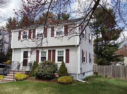 Beautiful and sunny home with nothing to do but move in! Home features large living room with fireplace and hardwood floors under the new carpet, formal dining room, kitchen, and half bath. Second floor features three bedrooms with hardwood floors and full bath, and also a large family room in the basement. Home is located on a level, corner lot that is fenced in and has plenty of room for expansion, and it is prefect for gardening, entertaining, and summer BBQs. Updates include vinyl siding, brick front steps, Newpro windows with transferable warranty, and 6 year old roof. Custom blinds and hutch in the kitchen will remain as gifts. Great commuter location with walking distance to bus stop to Boston and easy access to all major highways.