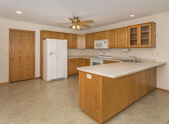 Move in ready one story walkout twin home, new carpet on main level, vaulted ceilings, gas FP, new hot water heater, over-sized 2 car garage, maintenance-free deck, patio, great yard, nicely landscaped, located on a bike/walking path and close to schools.