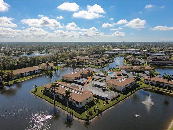 Fully FURNISHED TURNKEY FIRST FLOOR condo with carport AVAILABLE until the end of November 2025 for only $1950 a month (December 2025 is $3500). (Not available for season 2026). Beautifully REMODELED and furnished 2 bedrooms, 2 baths with gorgeous LAKE VIEW. All new gorgeous kitchen, new bathrooms, master bedroom flooring, new paint and much more. Wood floors in all main areas and guest bedroom, new carpet in the master bedroom, new tile floors in both bathrooms. Living room walks out to the Florida room/lanai. Washer and dryer are in the unit. You have your own covered parking spot right outside the front door and plenty of guest parking. Community pool is a very short walking distance from your front door. Active 55+ community, with beautiful grounds, pool and is only a few miles to Naples white sandy beaches. This is what Florida living is all about!