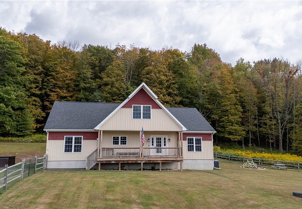Country Contemporary on 12 Acres – Turn-Key and Ready Set on 12 private acres just minutes from Roscoe, Callicoon, and Jeffersonville, this beautiful 5-bedroom, 3.5-bath country contemporary strikes the perfect balance of style, comfort, and space. Originally built in 2017 and thoughtfully updated by its current owners, the home has been elevated to a new level of modern country living. Step inside to a bright, open floor plan with soaring ceilings, walls of windows, and an inviting sense of togetherness. The chef-friendly kitchen features granite countertops, cherry wood cabinetry, stainless steel appliances, a propane cooktop, and a raised oven for baking convenience. Wood floors and pendant lighting bring warmth and elegance to the relaxed eat-in space. Upstairs, a balcony overlooks the great room, offering cozy reading nooks and seating areas that frame the views. The primary suite includes a private office, while four additional bedrooms provide plenty of space for family and guests. The finished lower level is designed for both fun and functionality, with a media area, pool table, workout zone, bathroom and a separate workshop. A pellet stove adds cozy comfort, while dual hot water systems and an efficient propane furnace keep the home running smoothly. Enjoy the outdoors in every season: sip coffee on the front porch, gather for meals on the back deck, or unwind in the hot tub under the stars. The large fenced yard is perfect for kids and pets, while the sunny acreage offers room for gardens, landscaping, or even a pool. Convenient walk up balcony doors make outdoor access easy. 2 hours to NYC via 17/86 easy on easy off.