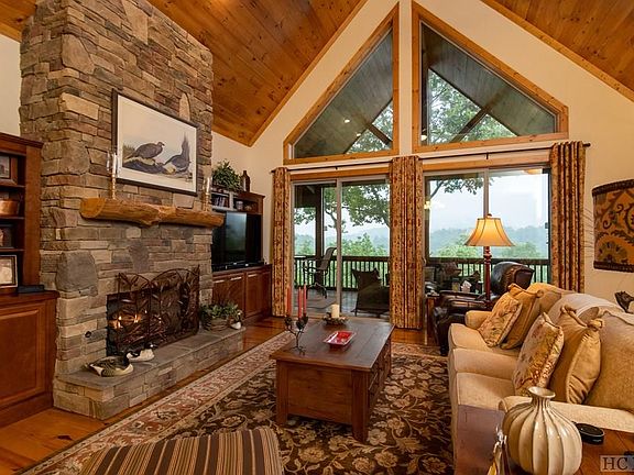 Hidden away in a very private setting, this beautiful, well-maintained home comes complete with three bedrooms, each with its own full bath.An elevation of over 3,300 feet offers long-range, panoramic views of Little Sheepcliff and Bald Rock with rock faces - a scenic getaway for the entire family to enjoy year-round. The dramatic living room with cathedral ceilings and stone fireplace, a large kitchen with a breakfast bar and lots of cabinetry, and a dining area are all open to one another. This layout offers lots of space for parties and family get-togethers. The covered decksofferroom to relax and enjoy the incredible views. The impressive primary suite features cathedral ceilings and its own porch access, as well as a stone-tiled walk-in shower. Downstairs, a spacious family room sits between two comfortable guest suites; all have access to the lower level deck. This exceptional Deer Run home comes with Sapphire Valley Resort amenities such as community events and concerts, golf, tennis, indoor and outdoor swimming pools, wet and dry saunas, hot tubs, a fitness center, a game room with billiards, ping-pong tables and arcade games, putt-putt golf, a horseshoe pit, zip-lining, skiing, a basketball court, and a walking track surrounding the playground and BBQ grill areas. Also included is access to Lake Fairfield with fishing, canoeing and paddle boating, plus a scenic three-mile walking trail around the lake. Make lifelong memories with friends and loved ones in this terrific mountain lodge home.