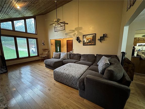Beautiful cedar home sitting on 25+ acres! Three bedrooms, two full bath rooms. Two car attached garage. Rec room, large storage room. Vaulted Living room, wood ceiling with abundant natural light and Gorgeous stone WB fireplace! Hardwoods, carpet, tile. Two first floor bedrooms with full bathroom in the hallway. Second floor owner suite, private full bath, large walk in closet, hallway reading nook, and a balcony! Rear covered deck leads to a fenced yard. The private setting offers mature trees, fenced rear yard AND a 28 x 40 pole building featuring new stalls and new fencing enclosing 1.75 acres for your farm animals! Roof is approximately 7 years old and central air is 1 1/2 yrs old. Public water, septic, AEP electric, Rumpke trash and CAS Cable fiber optic internet or Frontier.