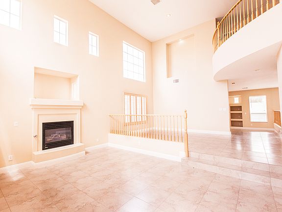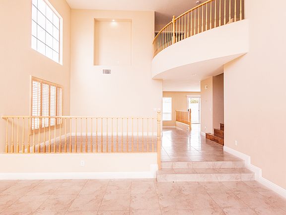 Low maintenance desert landscapingHigh ceilingGranite kitchen countertopsSeparate shower and bathtubTile flooring downstairsDual sinks with vanityShutters at entry
