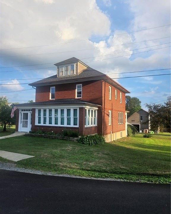 Original hardwood throughout this beautiful brick 4 square that sits on spacious corner lot that is just over an acre. The "Rails to Trails" run the entire length of the property. A charming 2 story carriage house has a lot of storage. The large, cemented basement has a canning room, toilet, sink and shower. The finished attic is a wonderful bonus room. This home features a BRAND NEW roof, new windows throughout (except for 4) Large eat in kitchen, newly renovated bathroom, on demand hot water(never run out of hot water) and front and back enclosed porches/4 seasons room. The yard is mostly flat with a small grove of Apple trees. Close to Cook Forest and Clarion.