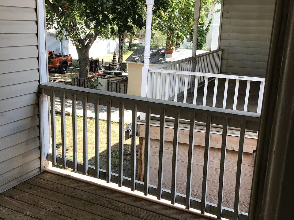 Large kitchen and living room and side porch second level unit washer and dryer on premises off st parking water sewer and trash included.