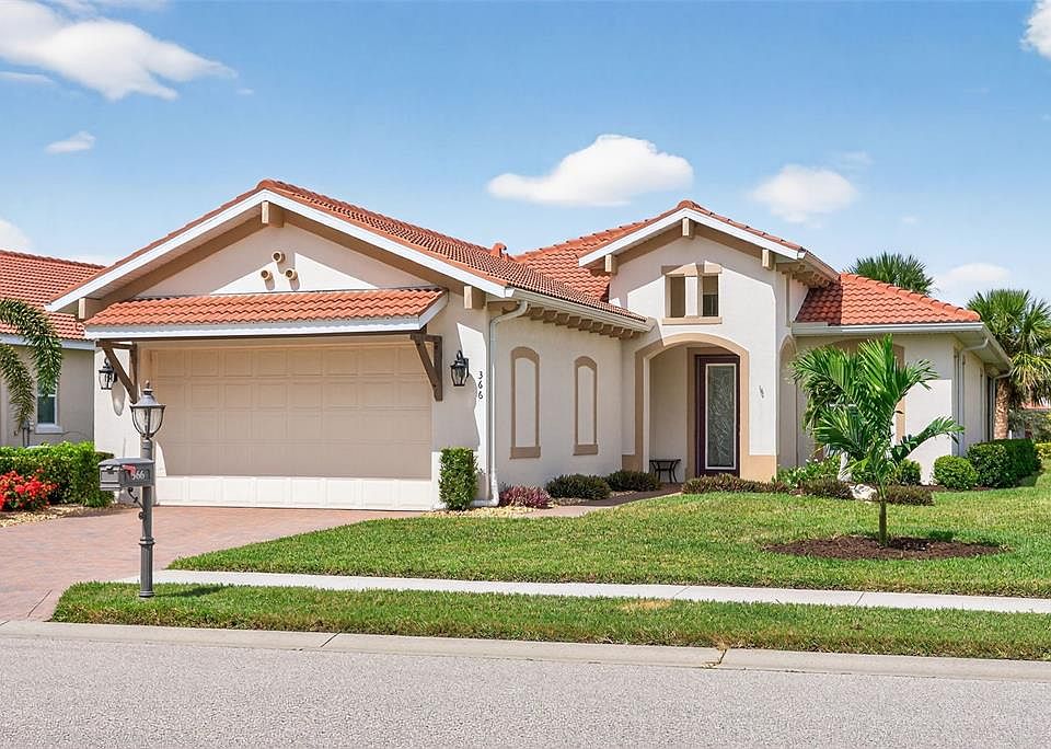 This isn’t your average WCI Florencia model and it's priced to sell! This one’s been dialed up with over $80K in upgrades and reduced CDD fees (CDD Loans Paid Off). At this home, PGT hurricane-impact windows wrap the home for peace of mind, while a panoramic lanai with StormSmart roll-down screens and a jacuzzi hot tub that conveys, turns your outdoor space into a private retreat. Inside, you’ll find engineered hardwood flooring in every bedroom, plantation shutters, crown molding, and all LED lighting. The kitchen was refreshed with a new farmhouse sink, new stainless steel appliances, and upgraded hardware. Even the garage got the royal treatment with epoxy flooring, overhead storage, and the most quiet garage door opener you never heard. Curb appeal shines with fully updated landscaping, elevated pavers, and a decorative impact-rated front door. Located within the Venetian Golf & River Club, you’ll enjoy resort-style living like nowhere else with two pools (resort style and lap pools), a new tiki bar, a walking deck that leads to the Myakka River, fitness center, tennis courts, dining at The River Club (residents only), a well maintained championship golf course and most importantly, Pickleball. Whether you remain within the gates of your community or choose to venture out to the heart of downtown Venice, every day can feel like a vacation. Don't overthink this one, schedule the showing and make this your new home!
