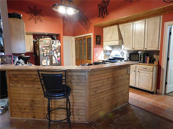 Spacious 3BR, 2BA home on over 7 acres! This home has beautiful wood vaulted ceiling, window seat, large bedrooms and lots of closet space in the master bedroom! A separate, unfinished space with water/electrical was meant to be outdoor kitchen but could also be used as a 4th bedroom. Home was remodeled in 2013 and added onto. Property has a large metal building shop with 2 roll up doors, 2 car attached garage as well as covered RV parking. Must See!